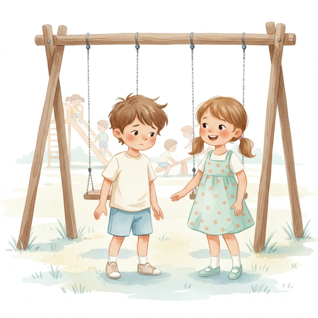 I saw my friend Mia in the playground. I felt a little shy, but I wanted to talk.