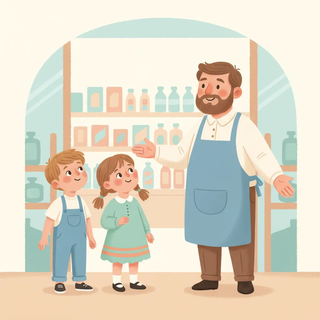 - At the entrance, I see a friendly shopkeeper.