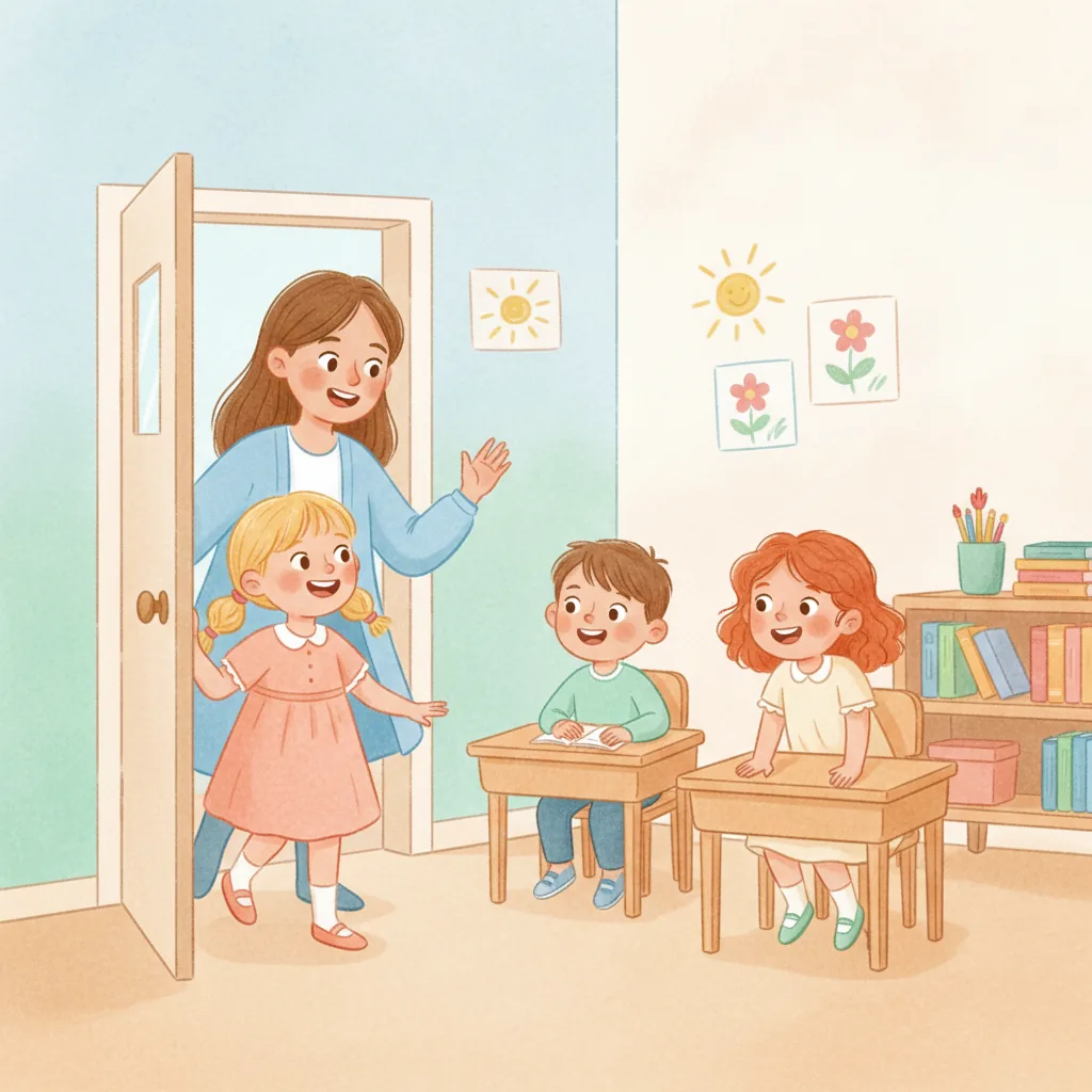 Quando entro in classe, vedo tanti bambini nuovi. Saluto la maestra con un sorriso.