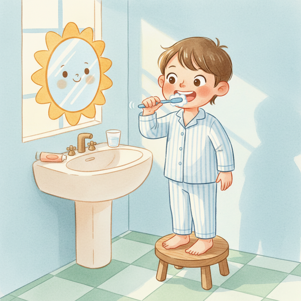 - Brushing teeth in the morning