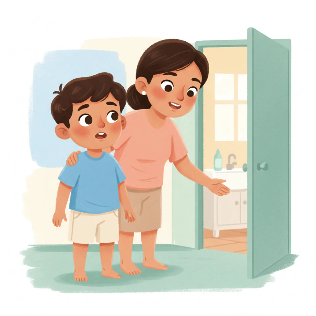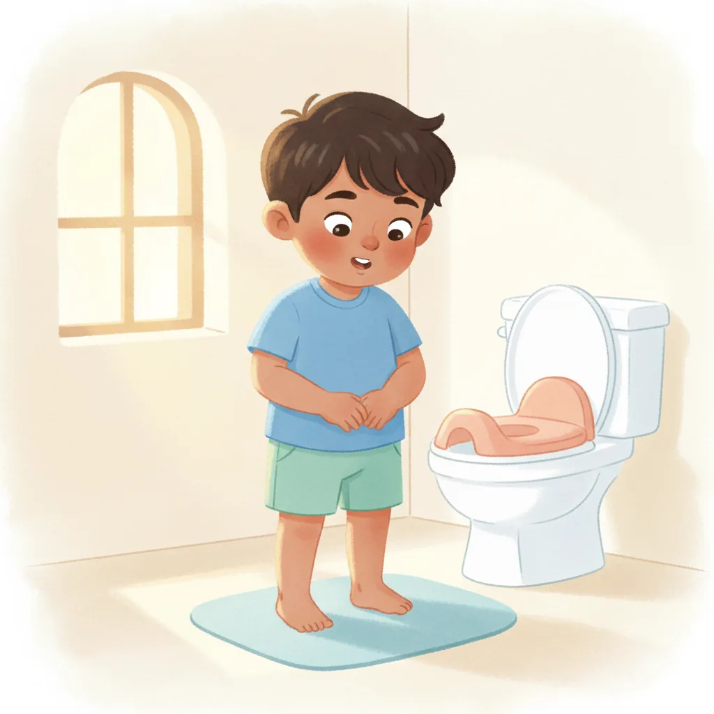 I felt a little squirmy. I needed to use the potty. Mommy said, "Let's go!"