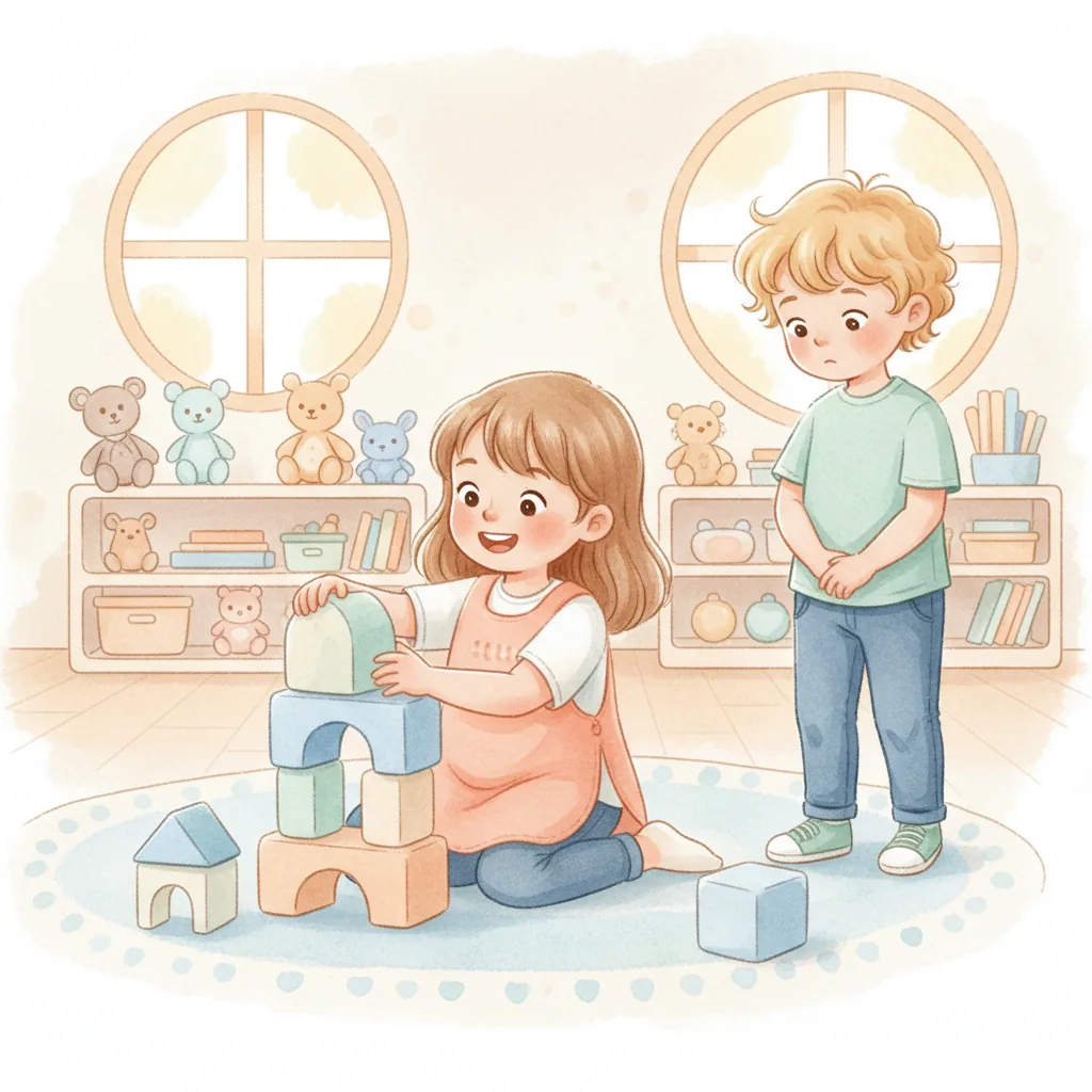 I saw my friend, Mia, playing with blocks.