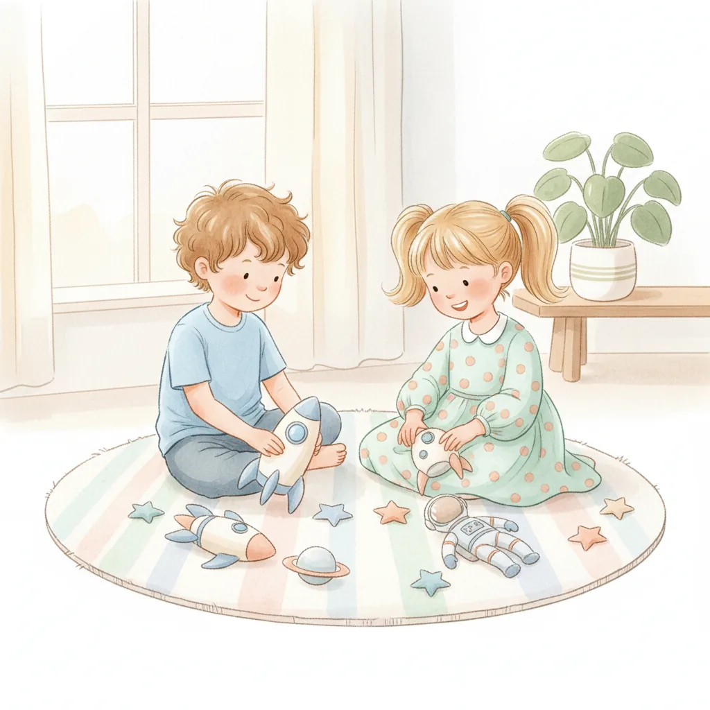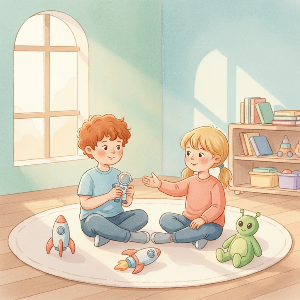 Join your child on a fun journey through space with friends! This printable social story encourages sharing and teamwork during playtime.